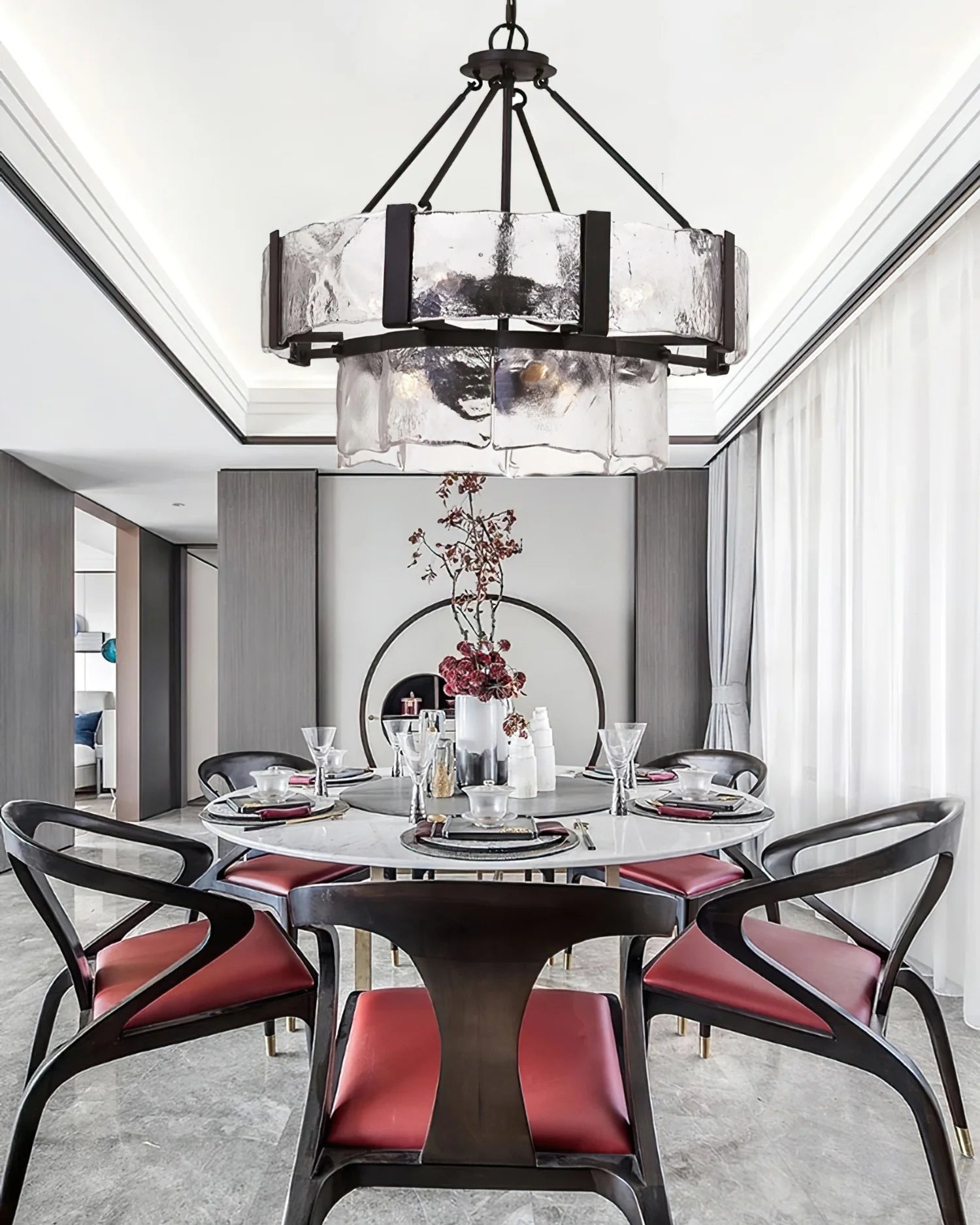 The Aenon Glass Chandelier from katianlight is a stunning double-layer chandelier crafted from metal and glass. Its intricate design features beautifully textured glass panels encased in a sleek metal frame, creating a captivating visual effect. The dual-layer structure enhances its elegance and provides a sophisticated lighting solution for any room. This chandelier's blend of metal and glass adds a touch of modernity while maintaining a timeless appeal.