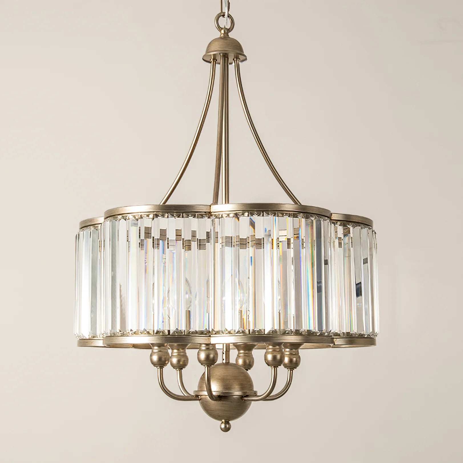 Made from a variety of materials, including: Metal (brass, bronze, iron, chrome) for the frame. Glass (crystal, Murano glass) for the prism or shade, which refracts light to create a sparkling effect. Other materials include wood, fabric, and even modern acrylic.