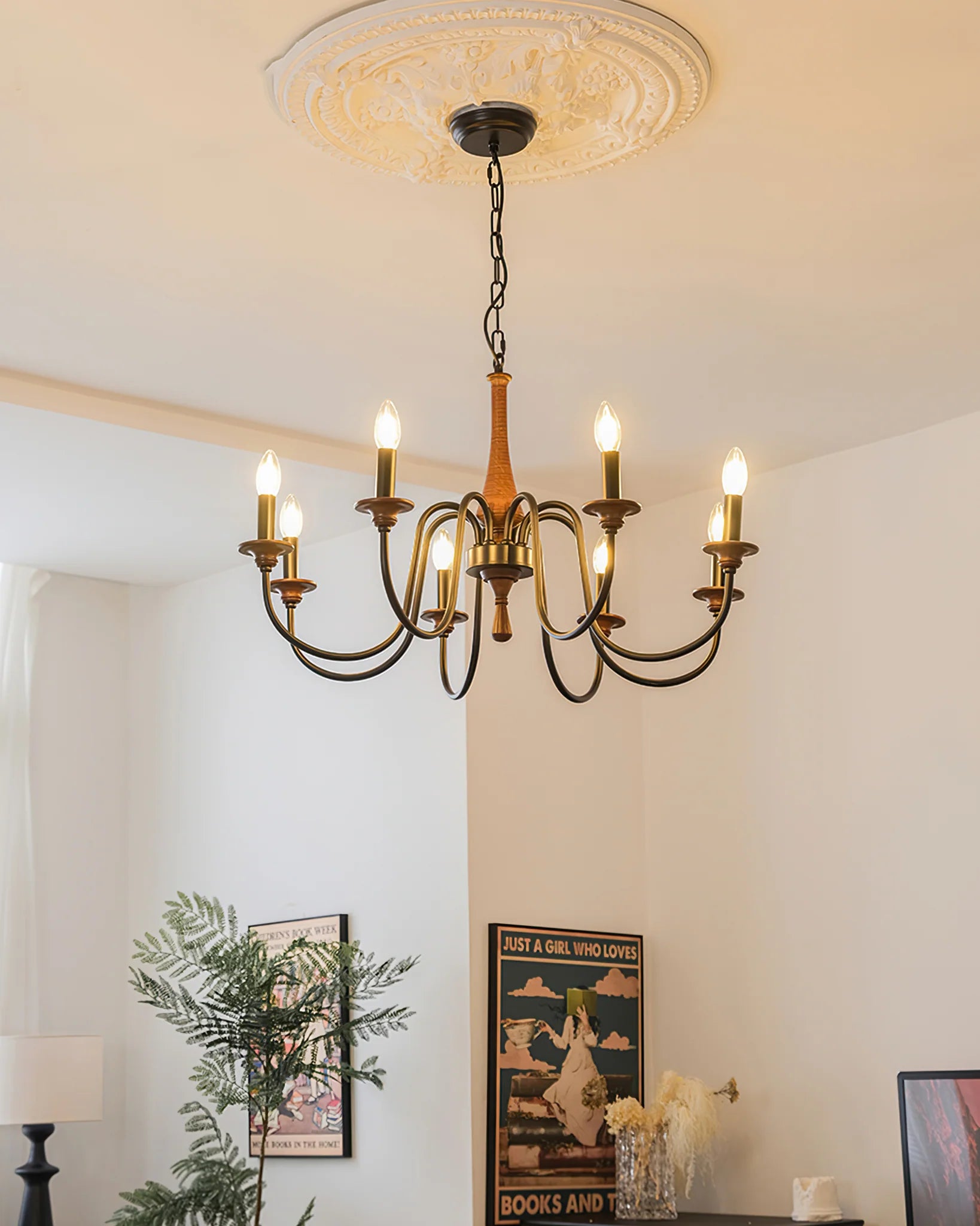 The Aubrey Chandelier from katianlight brings a classic elegance to any room. Crafted with a harmonious combination of wood and metal, its design reflects a perfect balance of traditional and modern aesthetics. The curved metal arms gracefully extend outward, each holding a candelabra-style bulb, while the central wooden column adds a touch of warmth and sophistication. This chandelier is ideal for dining rooms, living areas, or entryways, making a bold yet refined statement in any setting. Elevate your interior decor with the timeless charm of the Aubrey Chandelier from katianlight.