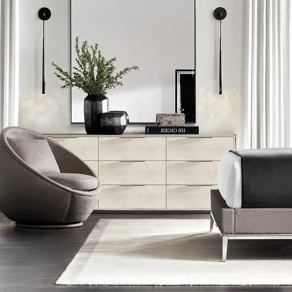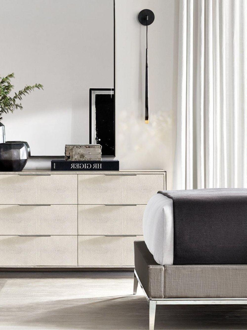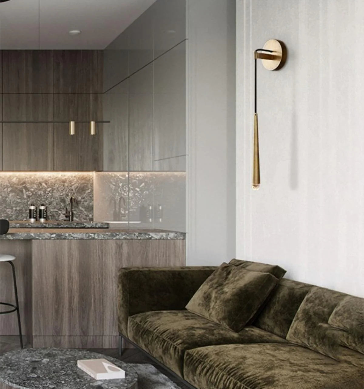 This Brass Cone Wall Lamp offers timeless elegance with a modern twist. A solid brass structure is suspended from a thin black cord, with an LED at the tip for soft, warm glow. Inspired by French design from the 1960s, it's an artfully simple addition to any space.
