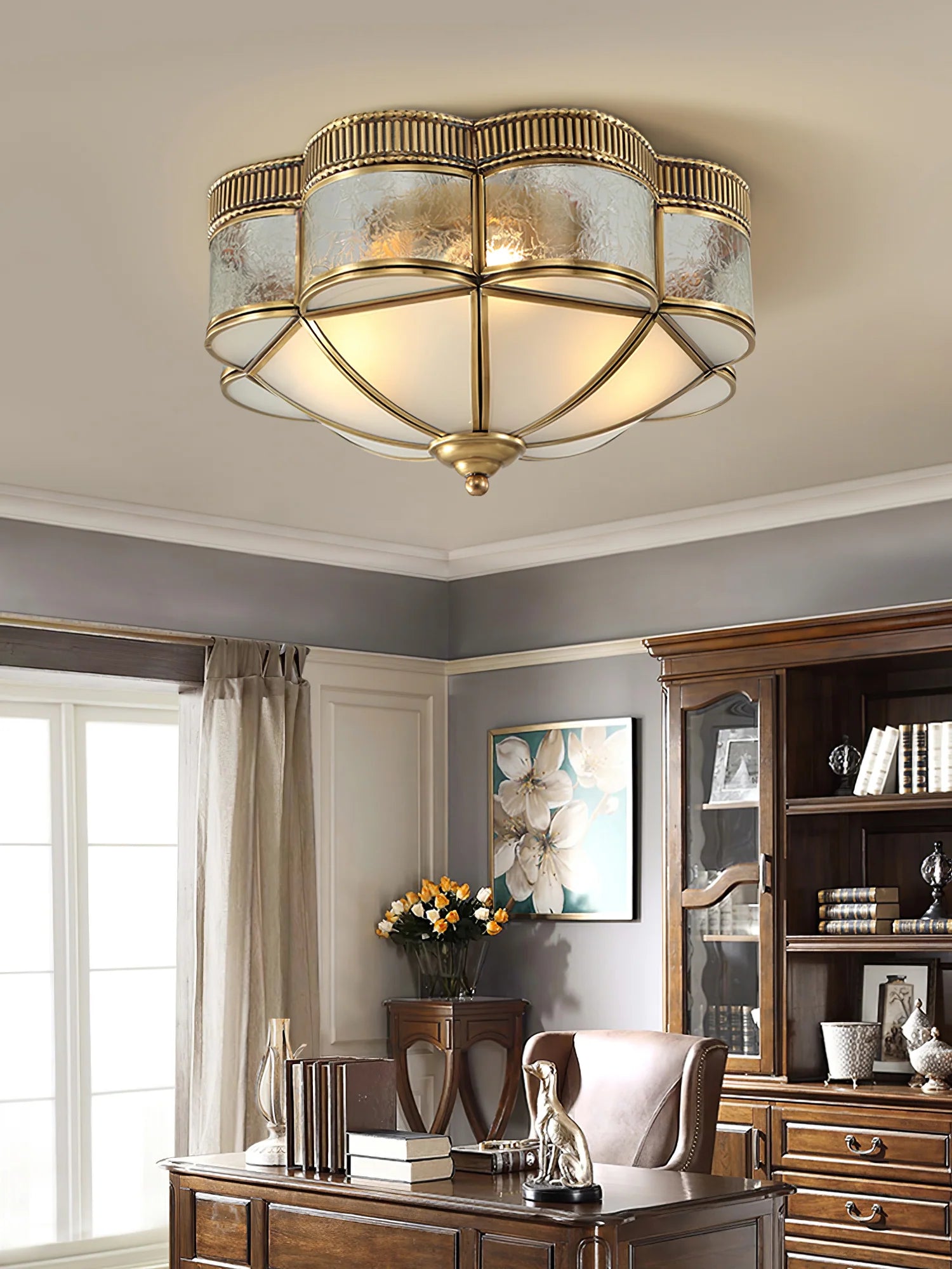 Brass Domed Flush Ceiling Lamp