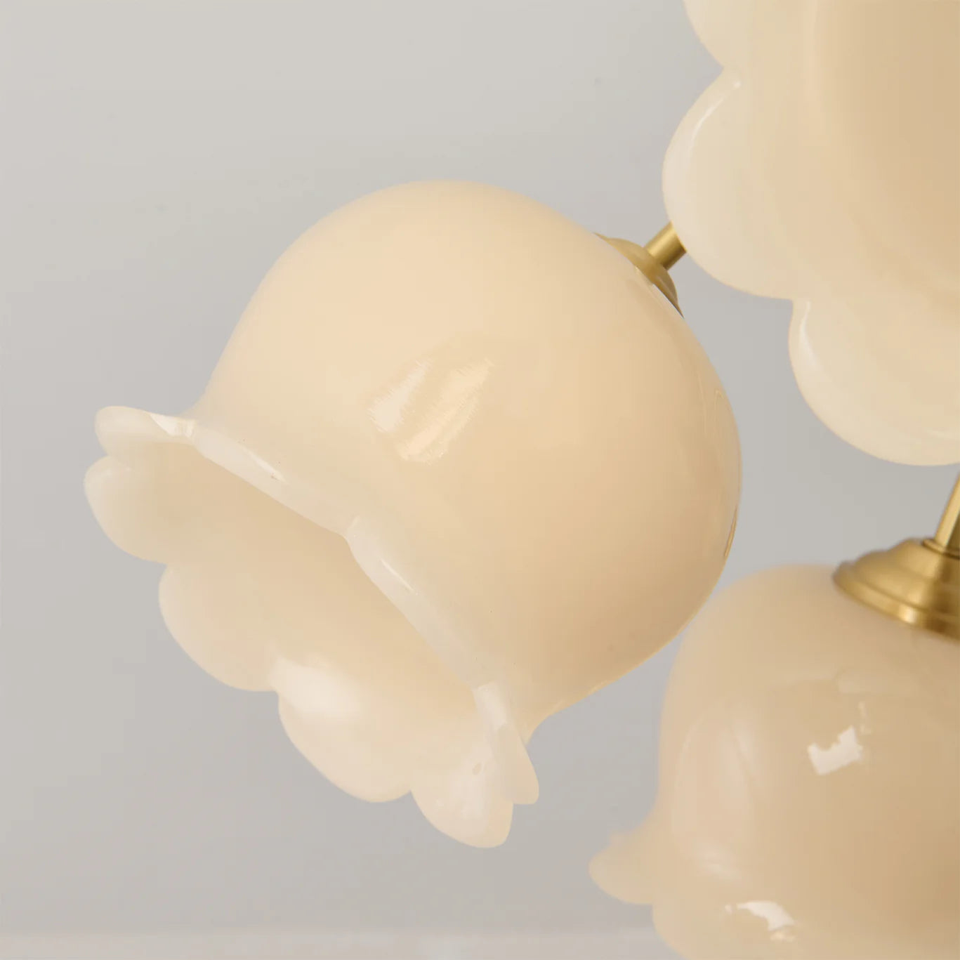 The Cacier Flower Chandelier by dekorfine elegantly combines floral-inspired design with sophisticated materials. The chandelier features six delicately crafted glass flower shades, each exuding a soft, warm glow.