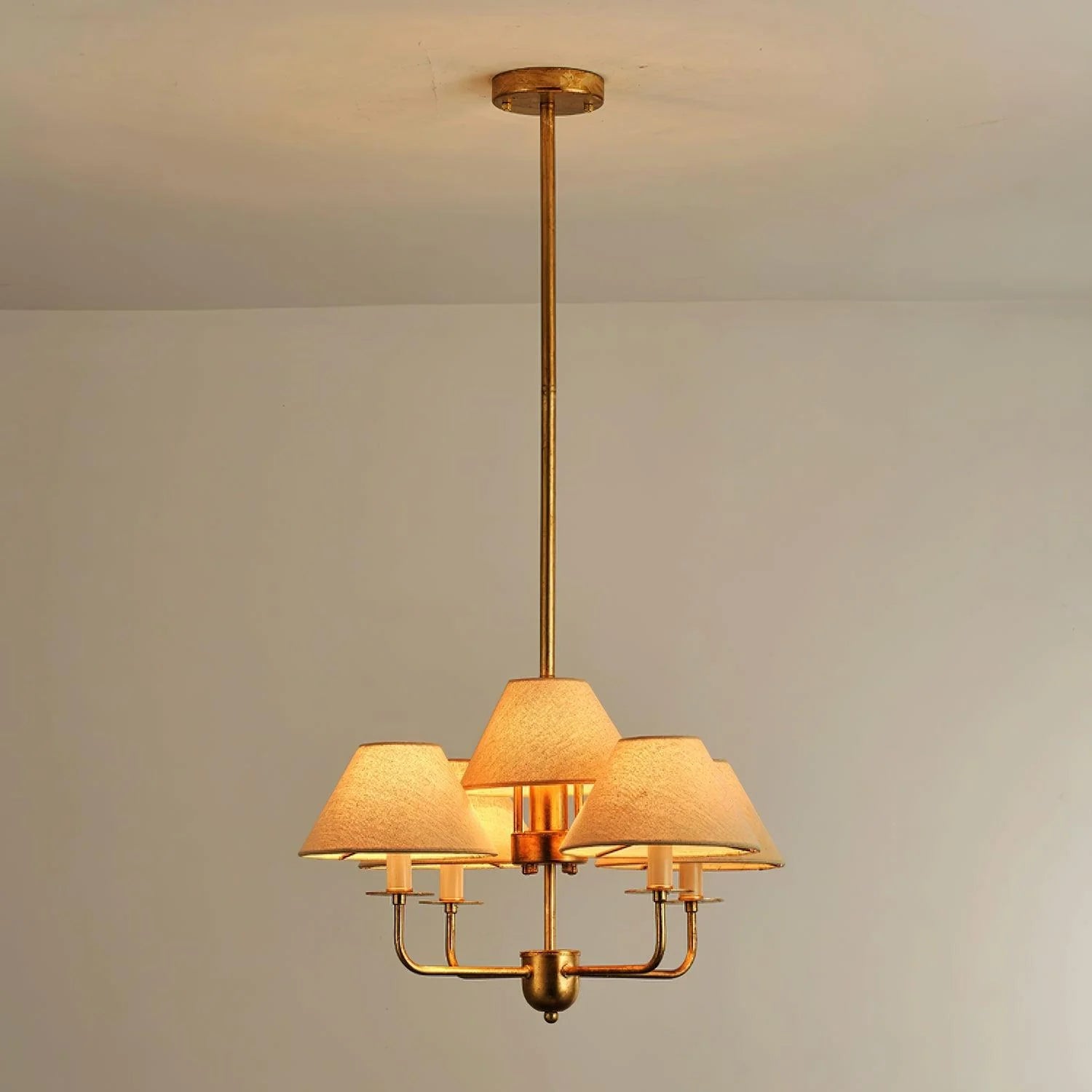 The vintage copper color and beige finish add to its warm and inviting ambiance for a luxurious touch to any space. Expertly crafted, this chandelier is a must-have for any design-savvy individual.