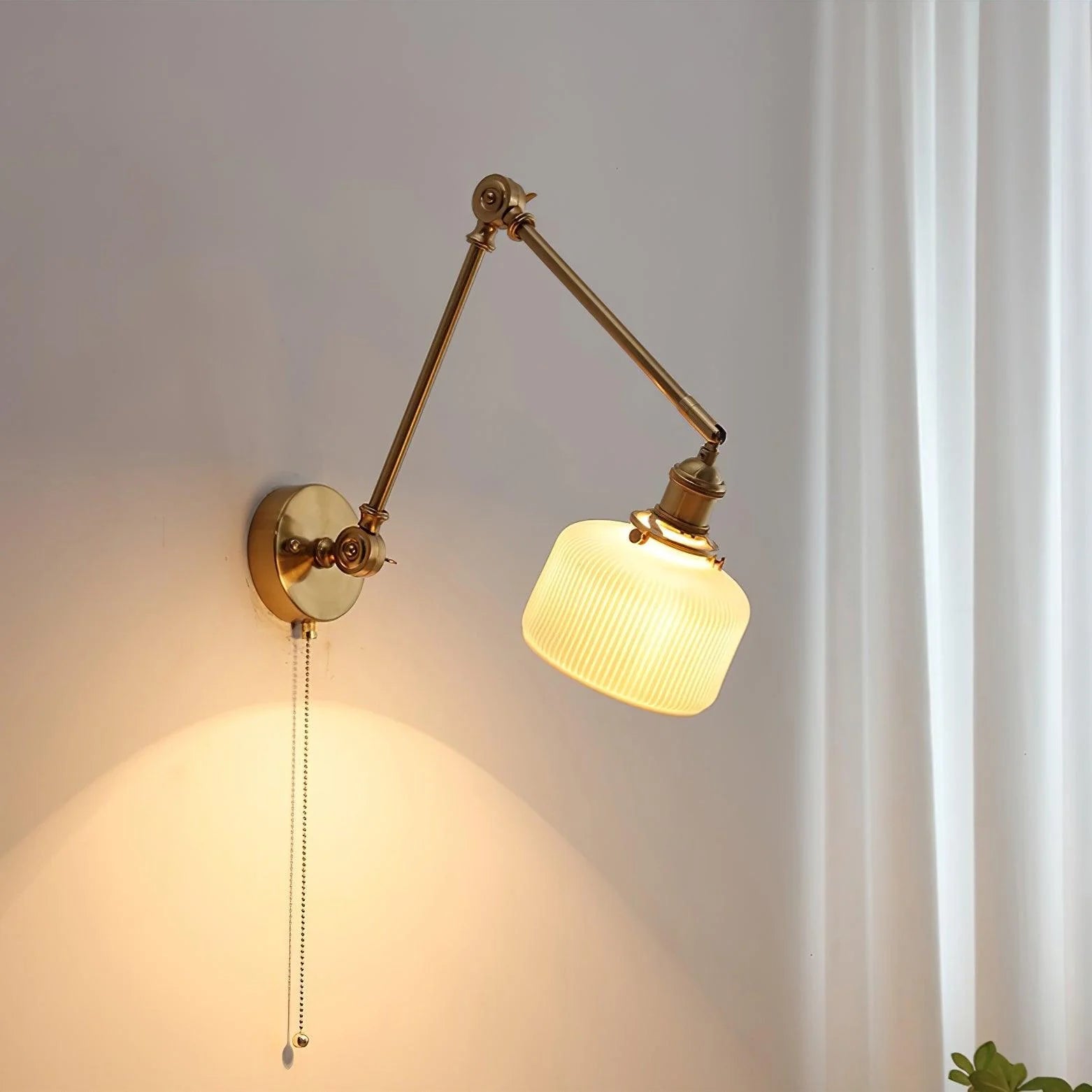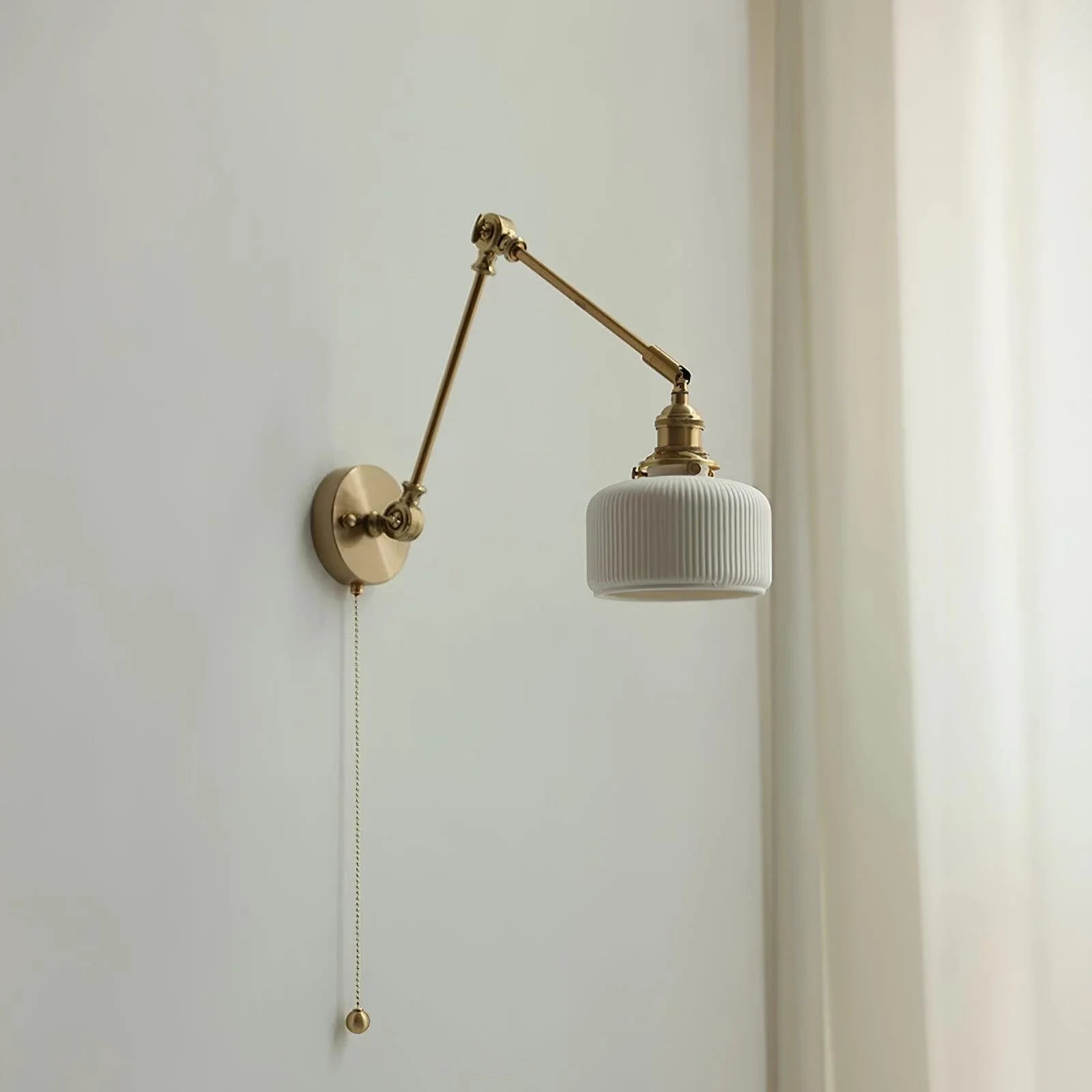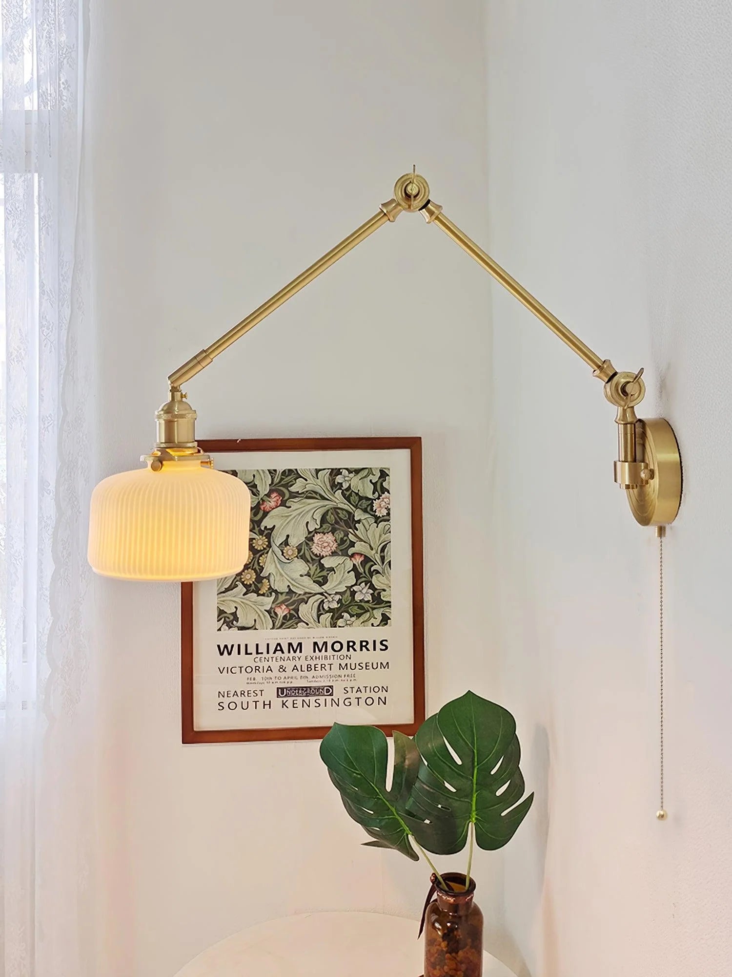 • It can be adjusted up and down by 180°, with a brass lamp arm and a white ceramic lampshade.