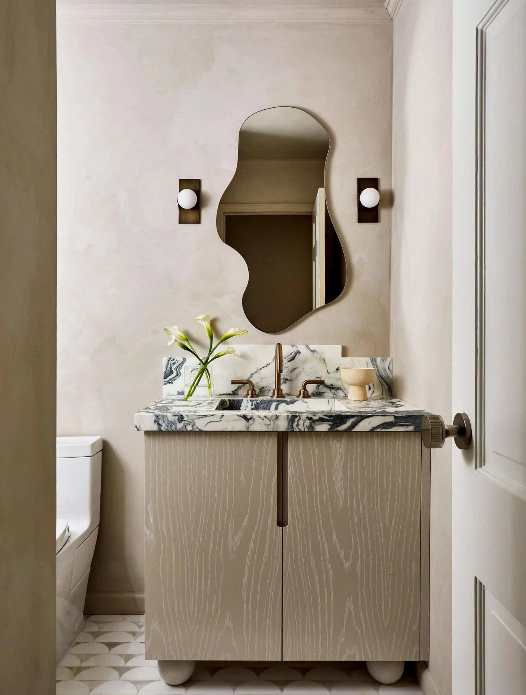 Bathroom wall lighting is often mounted above and/or alongside the mirrored medicine cabinet or bathroom mirror. This placement provides ample bright light for many bathroom tasks, including grooming and applying lotions and makeup.