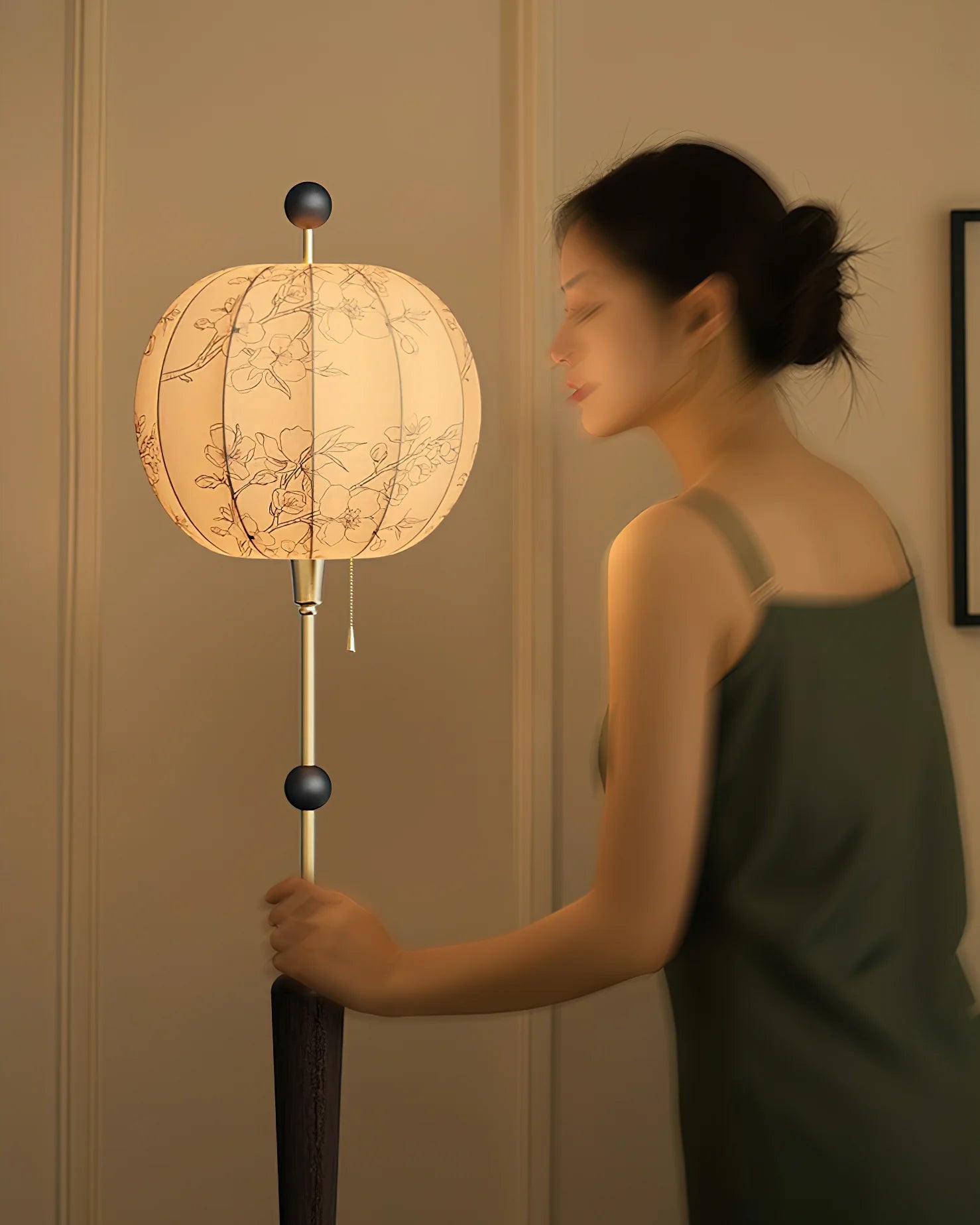Perfectly blending traditional oriental aesthetics with modern design. The delicate floral texture on the warm fabric lampshade seems to convey classical poetry and elegance. The lamp body is made of walnut and iron, presenting a balanced beauty, which is both stable and noble. This floor lamp is not only an ideal choice for home lighting, but also a decorative work of art. Whether it is placed in a corner of the living room or a corner of the study, it can create a warm and romantic atmosphere and add a touch of oriental charm to your home space.