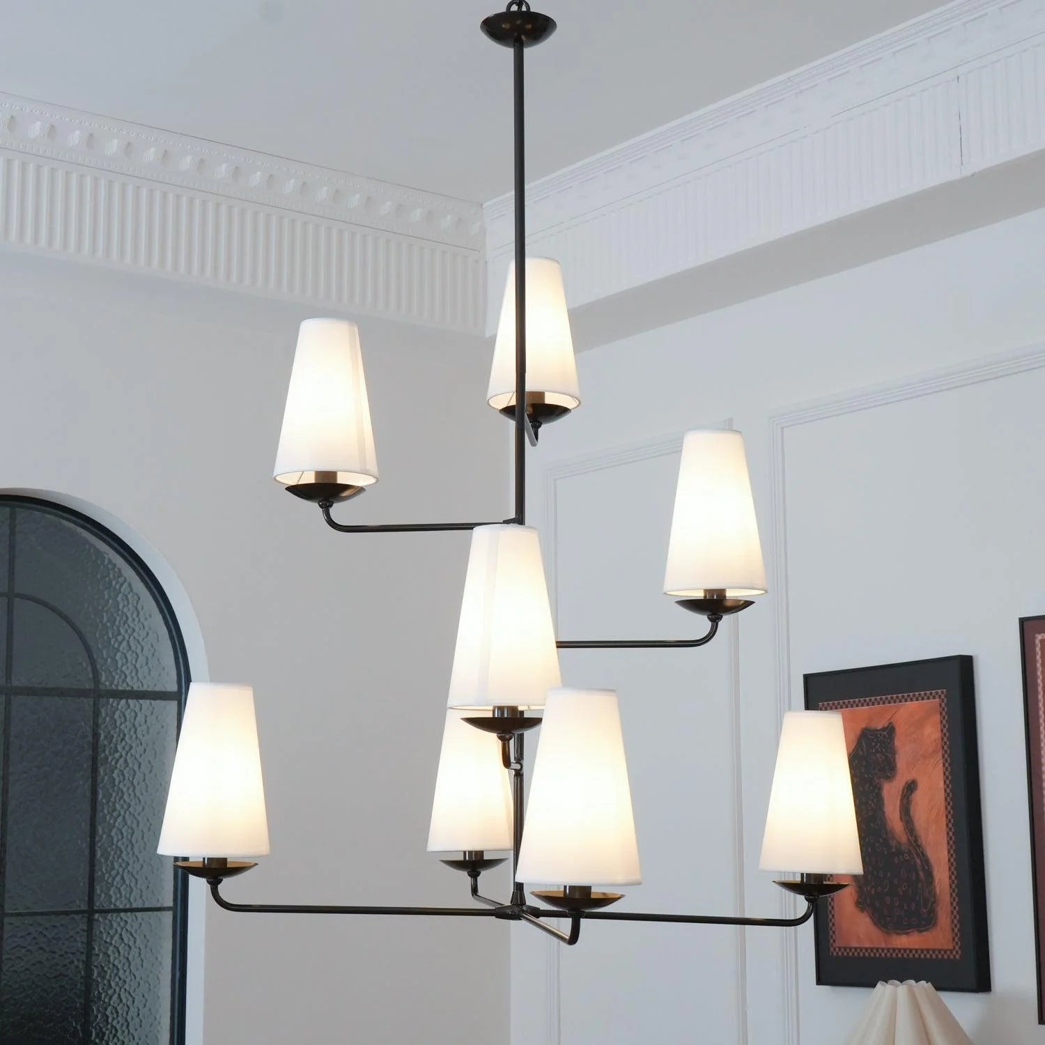 Chandelier is an elegant, decorative light fixture that is both functional and beautiful, often serving as a focal point for a room.