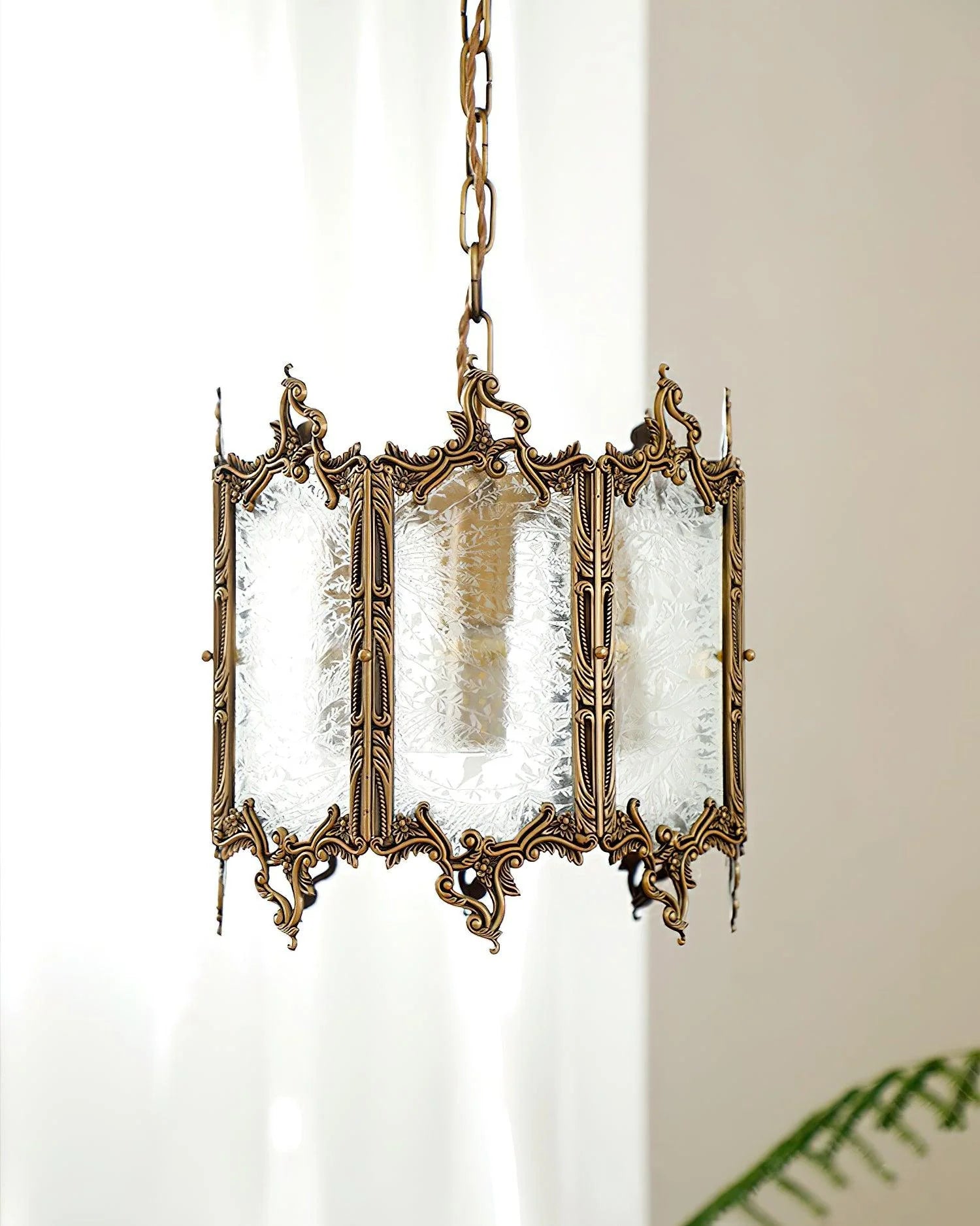 The Gatsby Antique Chandelier is inspired by the grandeur of the Roaring Twenties. Its exquisite brass frame and delicate etched glass panels evoke a sense of timeless elegance and sophistication. This chandelier is perfect for adding a touch of vintage glamour to a dining room, foyer or living space, creating a warm and inviting ambiance.