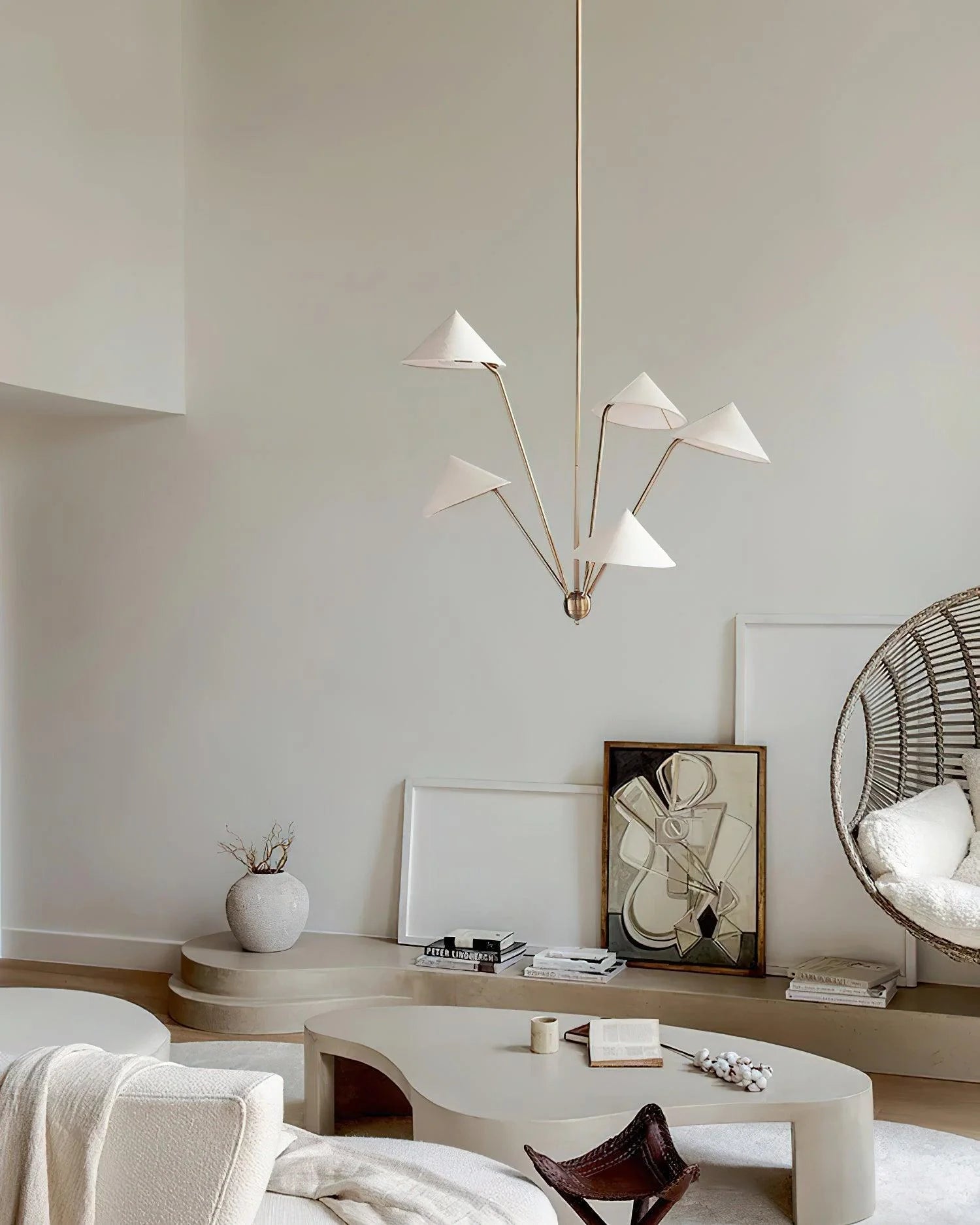 With geometric form as the core, it combines simple lines and sculptural aesthetics. The combination of the golden bracket and the beige lampshade interprets a symphony of modernity and retro, aiming to add a balanced and warm focus to the space. It is inspired by the continuous pursuit of the harmonious aesthetics of modern life.