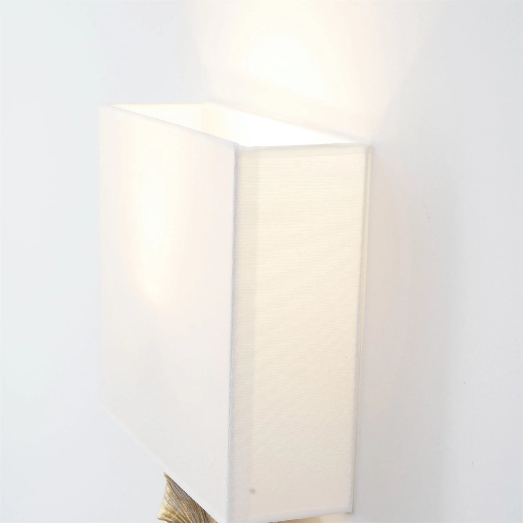 Introducing the Gingko Antique Wall Lamp from Dekorfine—an exquisite blend of vintage elegance and natural inspiration. The lamp’s design features a beautifully detailed brass frame in the shape of two gingko leaves, symbolizing longevity and resilience. The leaves branch gracefully from the center, holding a rectangular fabric shade that softens the light, creating a warm and inviting ambiance. Its antique brass finish adds a touch of luxury, while the unique botanical shape brings a modern organic twist