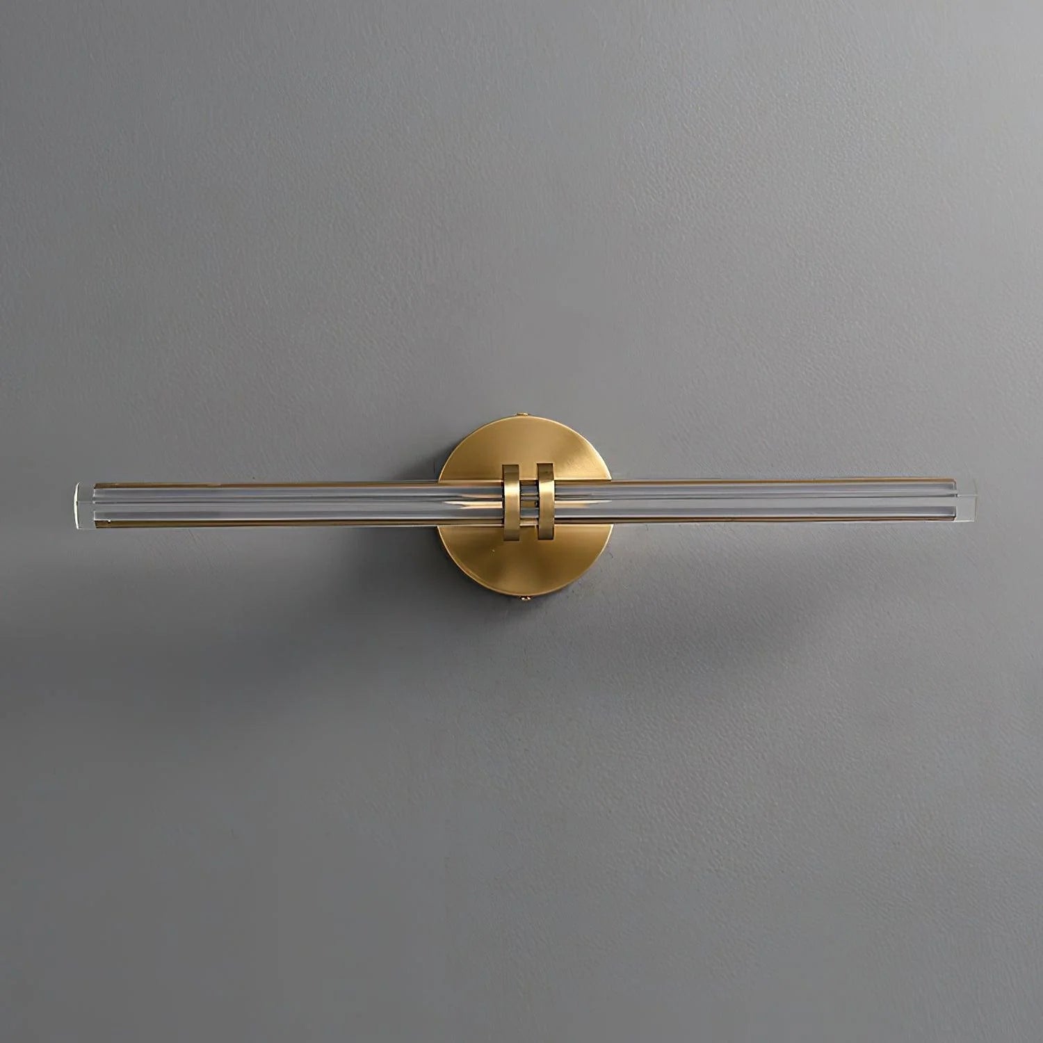 With its streamlined tubular design, it emits a warm, even glow. Its simple gold frame adds a touch of modern elegance, making it ideal for contemporary interiors seeking functionality and style.