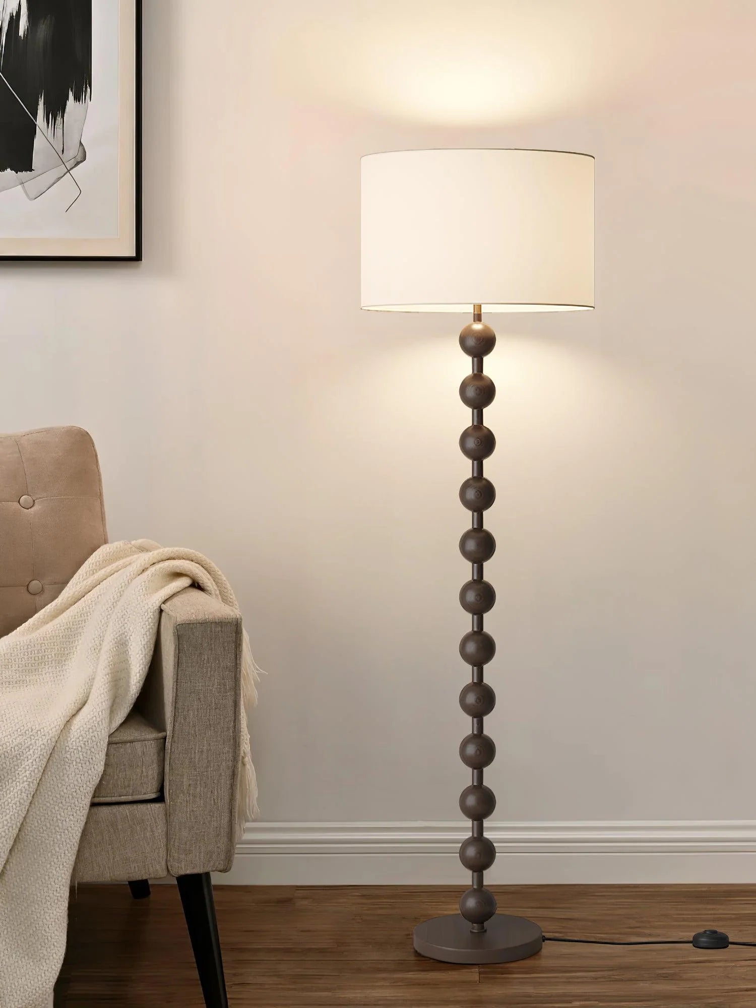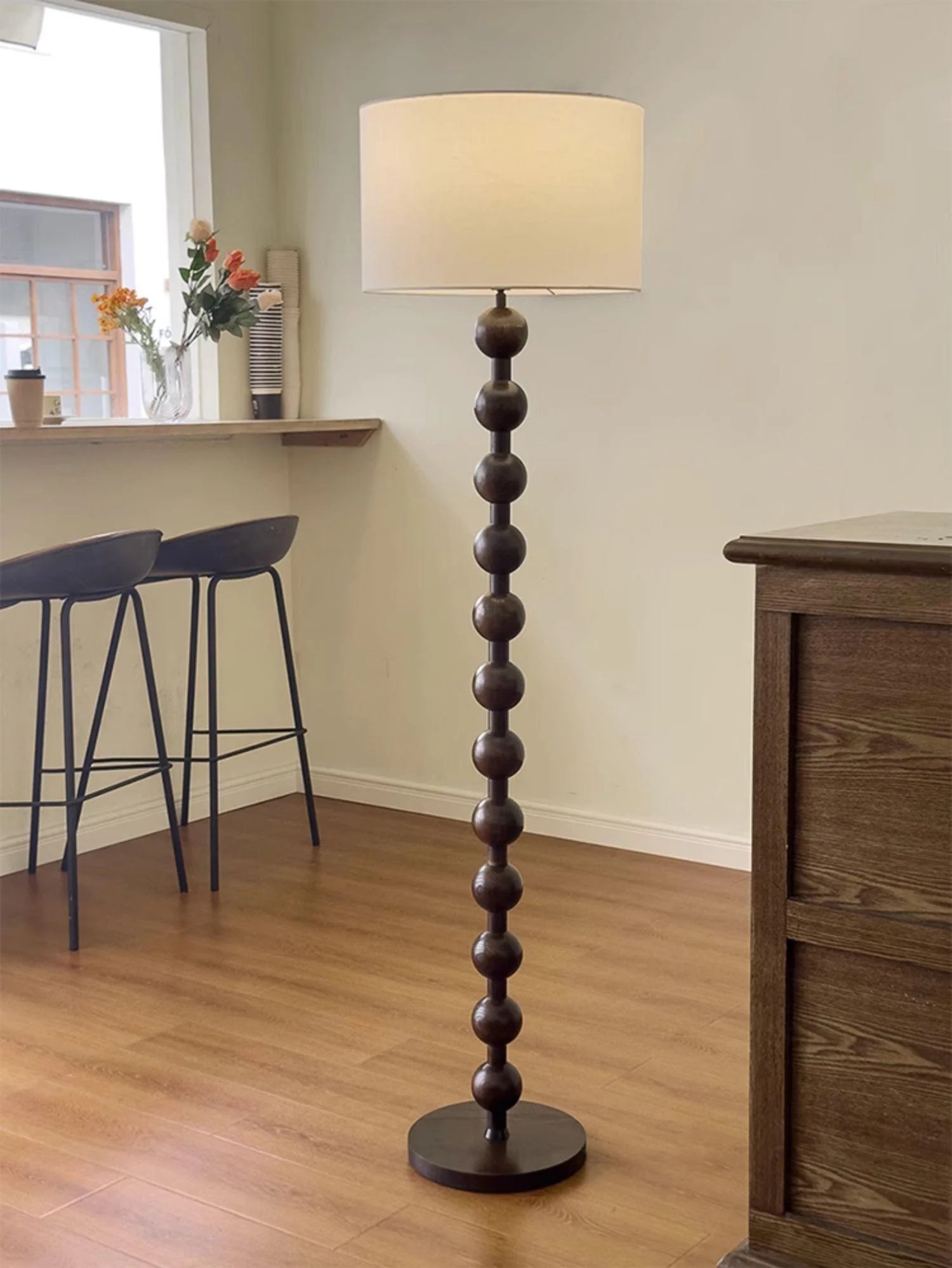The charming sculptural design of the Hugo Barbell Floor Lamp is certain to add character to any room. Hand-crafted in China, the solid ash wood balls create a fixture that is as sturdy as it is stylish. The grained oak texture shows through the finish revealing a rich history unique to each piece.