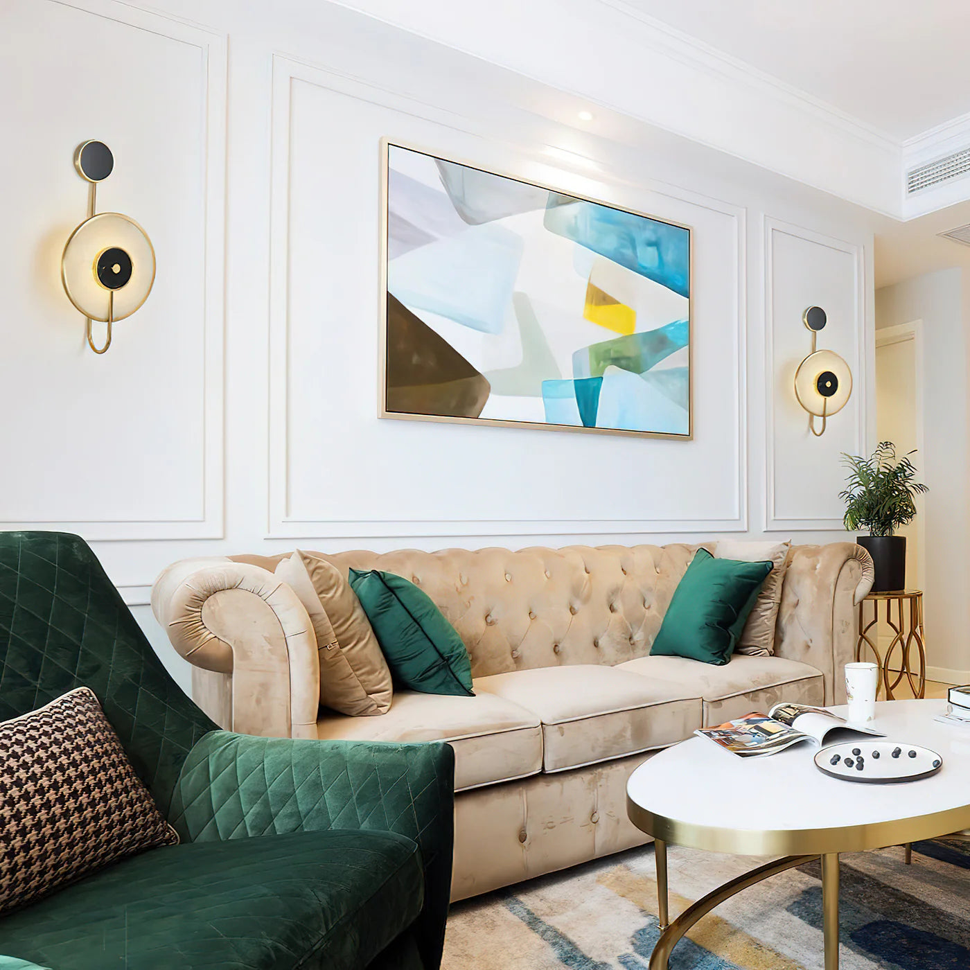 Introducing the Kandy Alabaster Wall Lamp by katianlight—a masterpiece of contemporary design and exquisite craftsmanship. This elegant wall lamp features a harmonious blend of polished brass and natural alabaster, creating a sophisticated ambiance in any room. The alabaster's soft, diffused glow provides a warm and inviting illumination, while the brass elements add a touch of modern luxury. With its sleek circular design and minimalist aesthetic, the Kandy Alabaster Wall Lamp is not just a lighting fixture, but a stunning decorative piece. Enhance your living space with the refined beauty of the Kandy Alabaster Wall Lamp by Mooiehome, where artistry meets functionality.