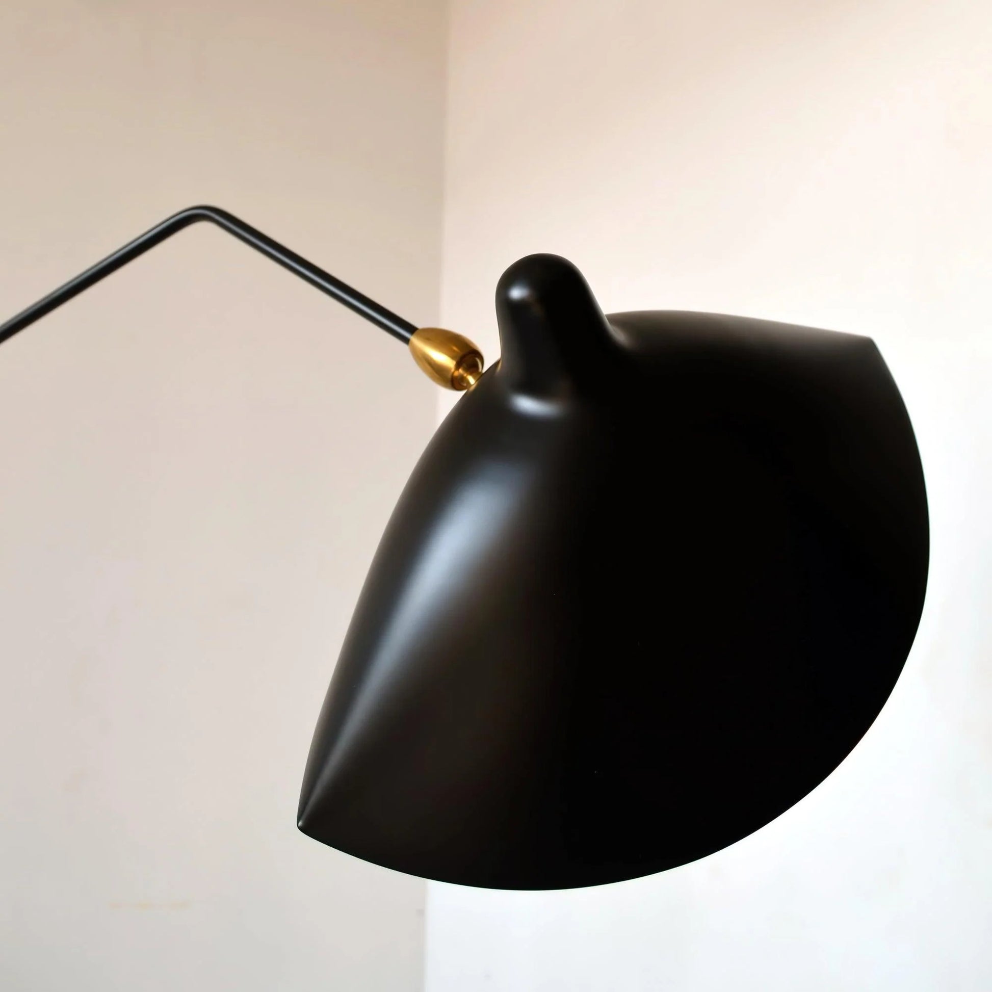 Mouille designed his angular, insect-like lights as "a reaction to the Italian models that were beginning to invade the market in 1950," which he criticized for being "too complicated." His large-scale Three-Arm Floor Lamp (1952) has a kinetic, sculptural aesthetic that evokes a sense of movement in space. All of the arms can be rotated in various directions, allowing for ample, well-directed lighting for any task.