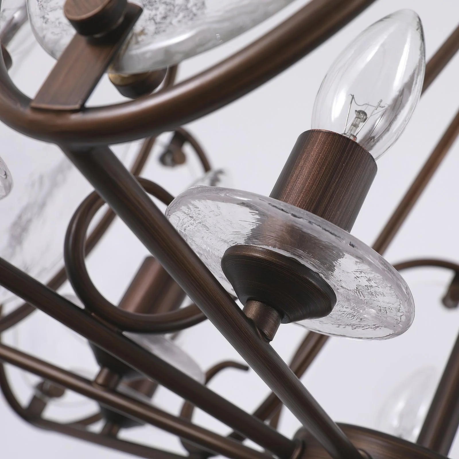 Glam up your space with the Ombelle chandelier! Its industrial bronze finish and circle glass create an eye-catching centerpiece with an abundance of shimmering light. Make a modern statement in your dining room, living room, or hallway today!