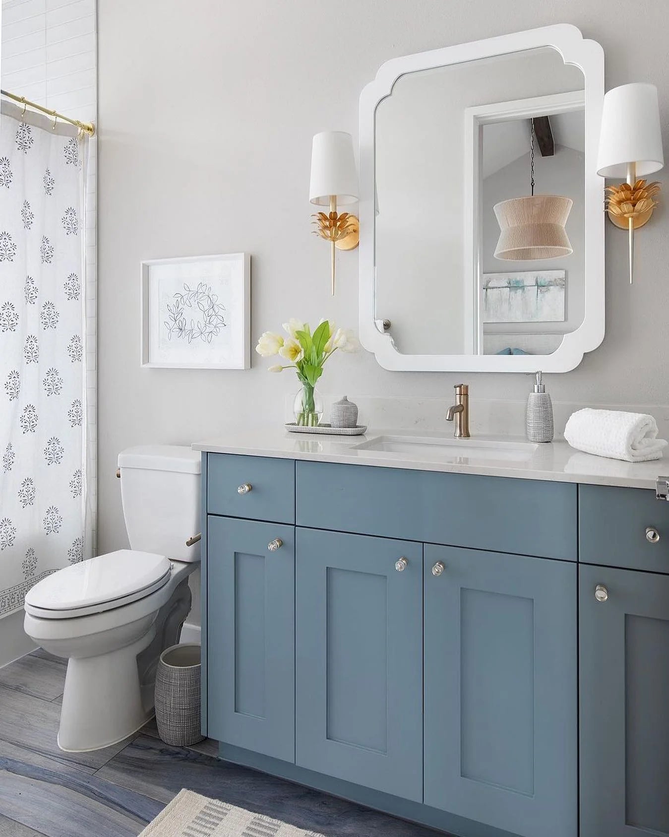 Bathroom wall lighting is often mounted above and/or alongside the mirrored medicine cabinet or bathroom mirror. This placement provides ample bright light for many bathroom tasks, including grooming and applying lotions and makeup.