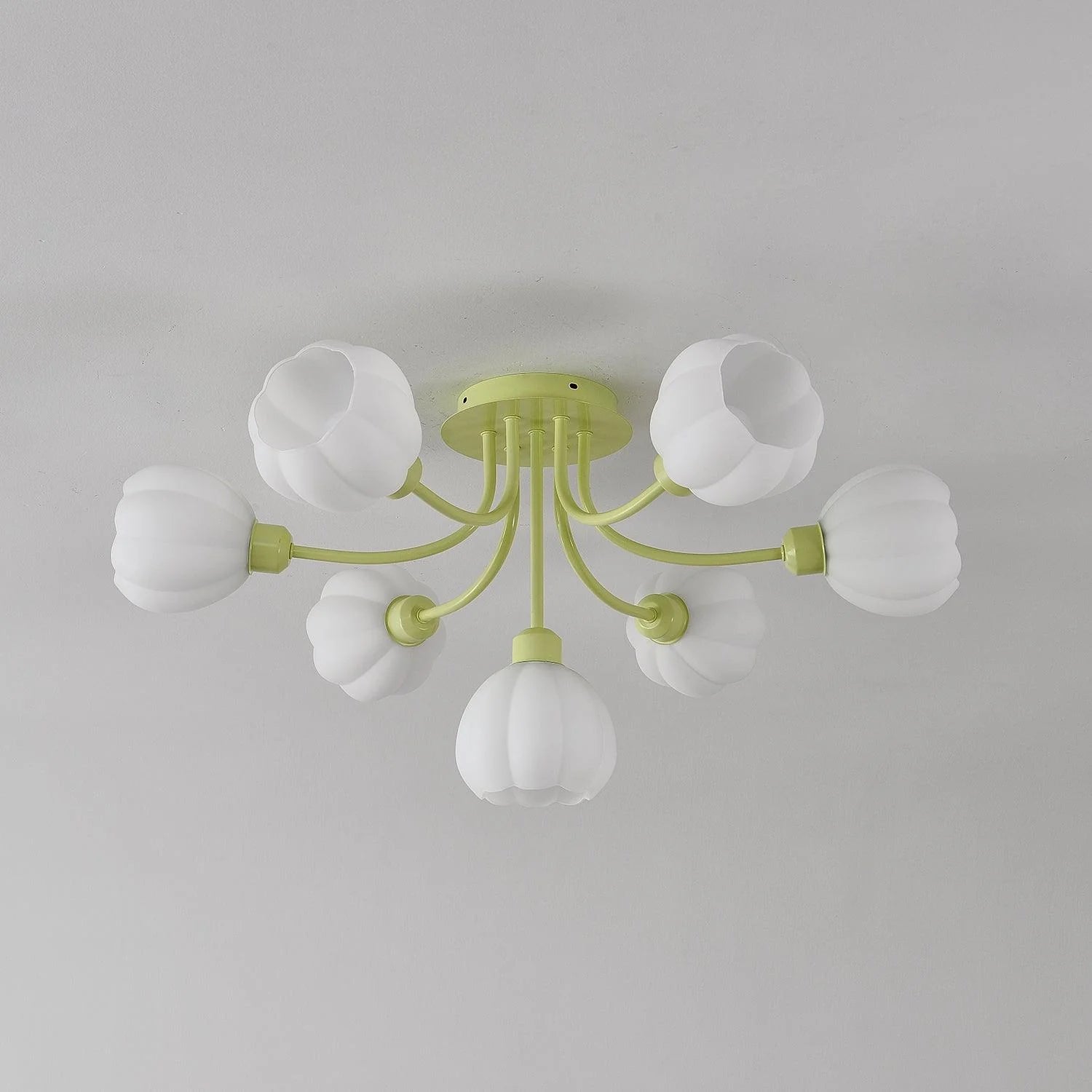 Bring a unique modern twist to your home with the Pumpkin Matcha Ceiling Lamp. The glass-blown pumpkin-shaped shade in white and green metal finish create a striking, stylish look, giving your space a bold boost of chic. Take the plunge and make a daring statement with this dynamic lamp!