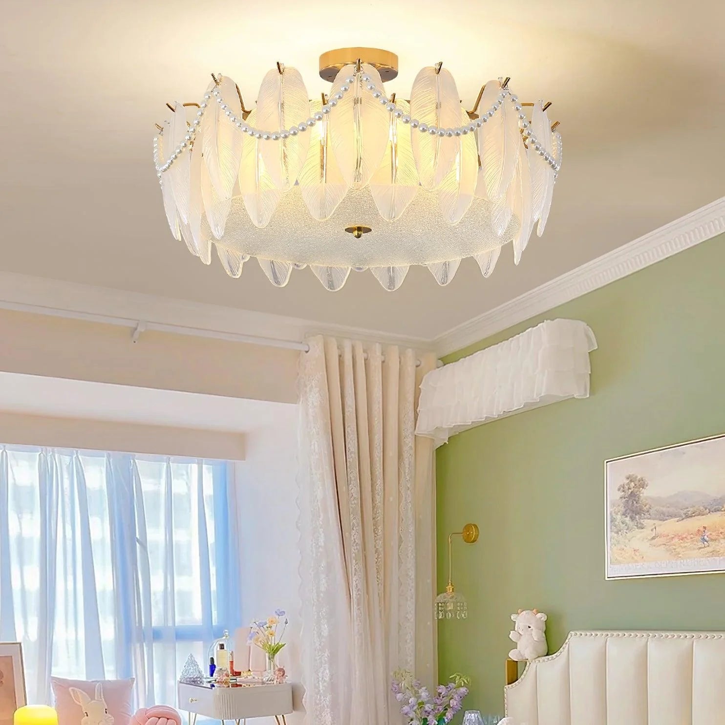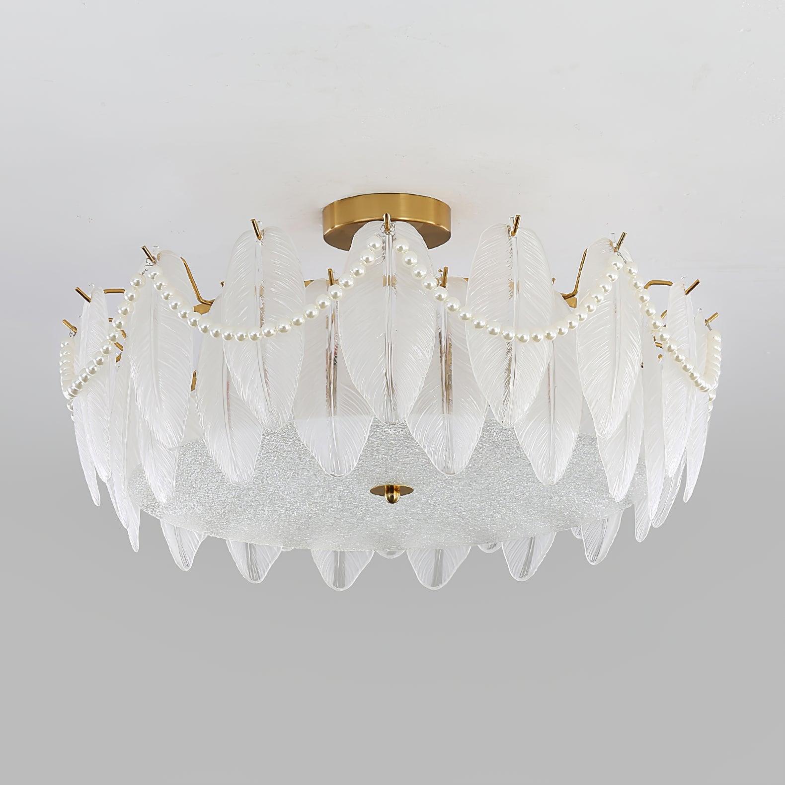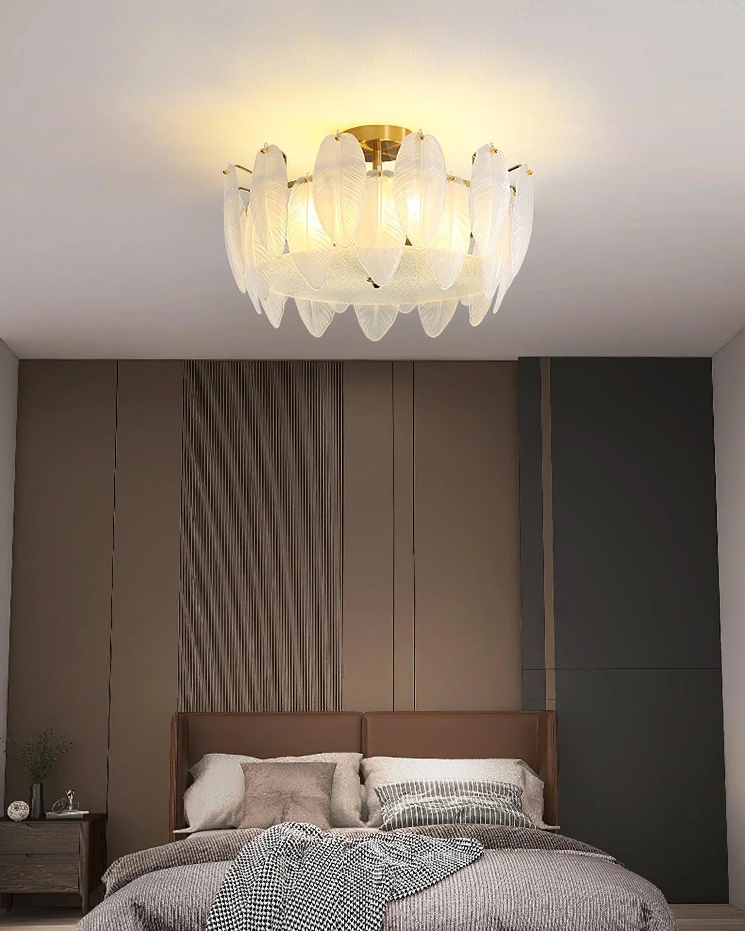 Add a touch of retro style to your home with this Retro Feather Ceiling Lamp! This unique combination of feathers, metal lines, and glass texture creates an eye-catching and contemporary effect that will be sure to be a conversation starter. Be bold and brighten up your home with this daring design!
