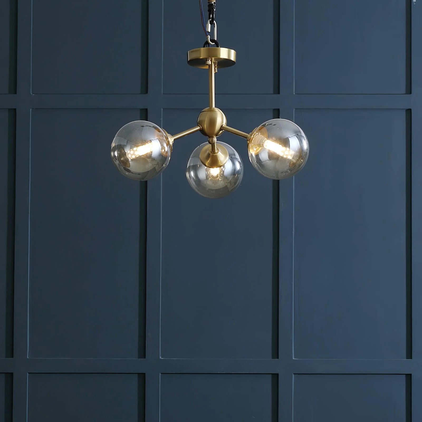 Modern farmhouse flush mount ceiling light features a dual glass ball design with a sturdy metal body in a brass finish for a glam. The gold light fixtures diffuses a cozy glow for an inviting feel and offers a modern and eye-catching style while complementing your home decor.