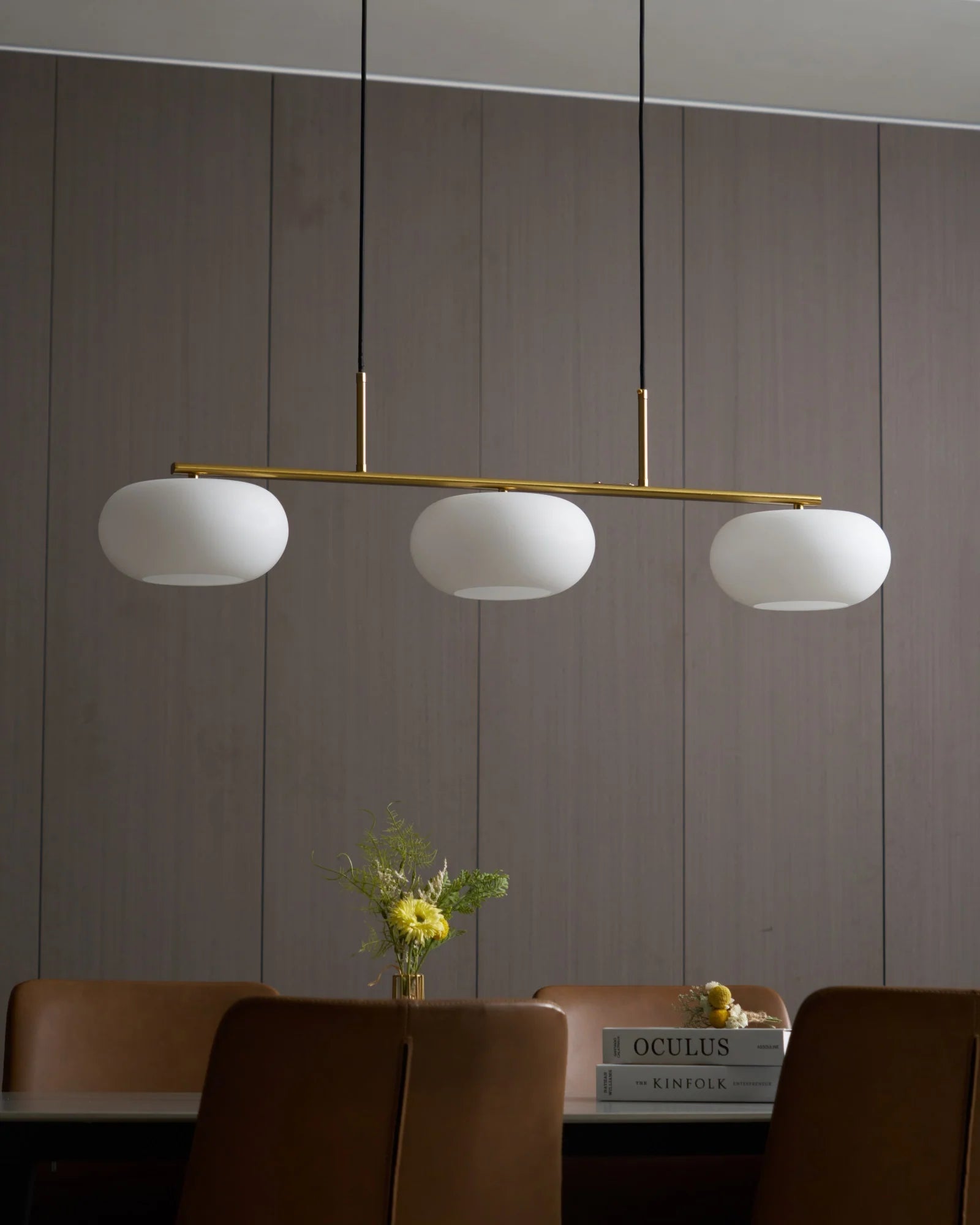Sleek and height-adjustable, our Sculptural 3-Light Pendant's modern globe-shaped shades create a cozy atmosphere over a dining room table or kitchen island. A great decoration for your house.