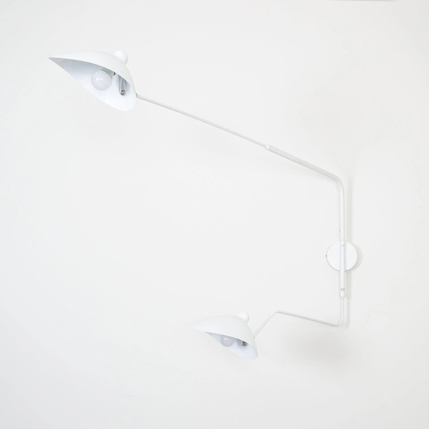 Mouille's insect-like designs from the 1950's were created as a reaction to heavier, clunkier Italian designs of the time. Mouille wanted to create modern lighting fixtures that had delicate lines and a stunning visual presence. The One-Arm wall sconce is one of Serge's most versatile lamps.