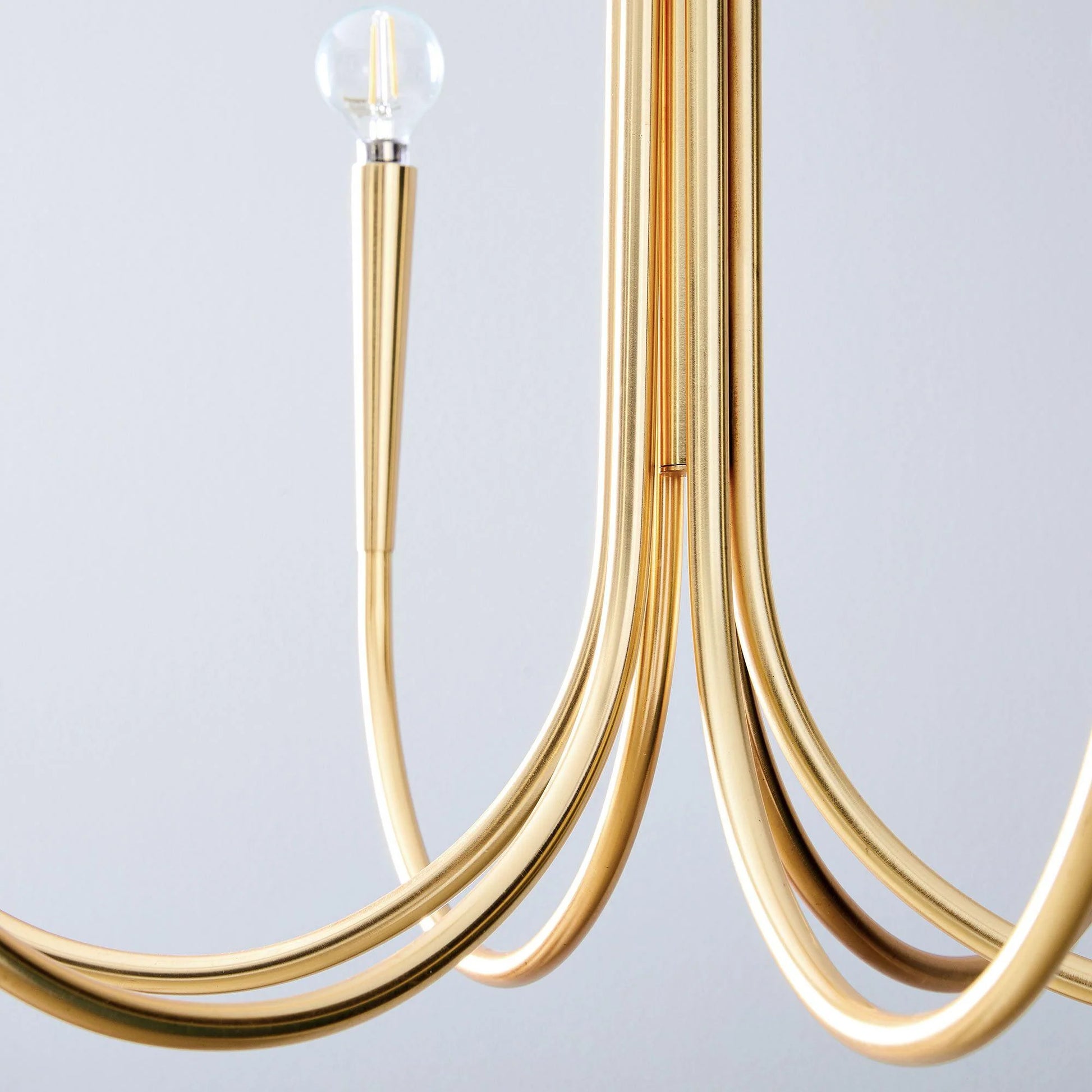 Make a statement with the Swoop Arm Chandelier—featuring sleek and stylish curves that offer a modern take on a vintage design. Hang this striking chandelier above a dining table for a show-stopping centerpiece or in a living room for a touch of modern elegance.