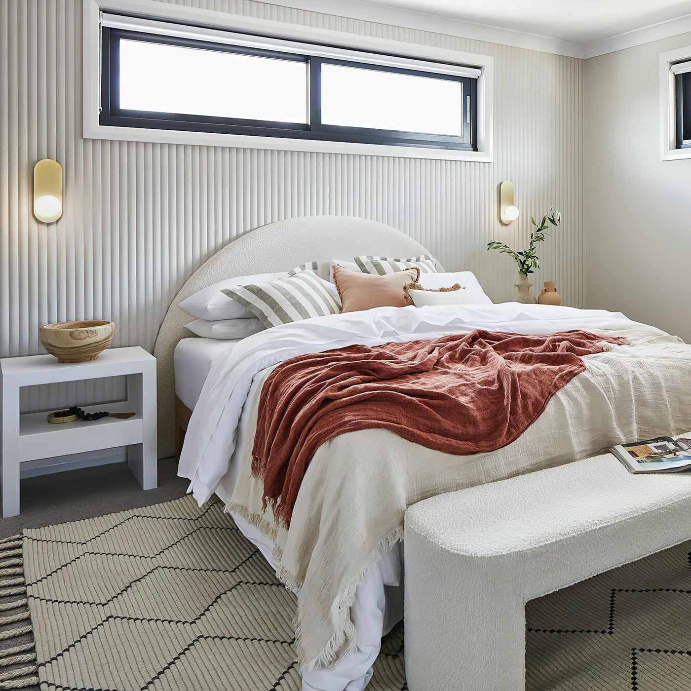 Among the most popular placements for a wall light fixture in the bedroom is above and to the side of the headboard, often on both sides of the bed. This mounting placement provides an elevated, hotel-like look and feel to the bedroom.