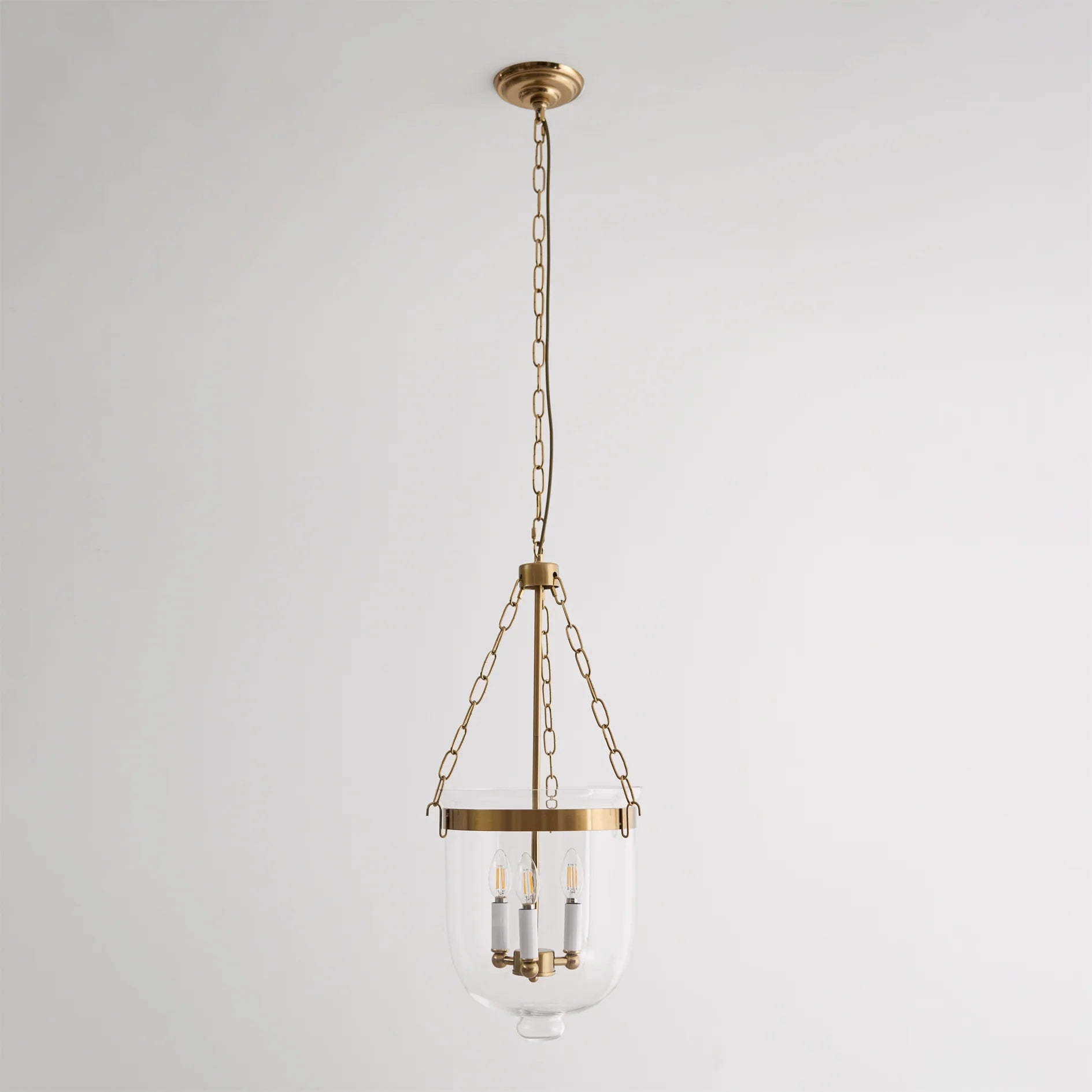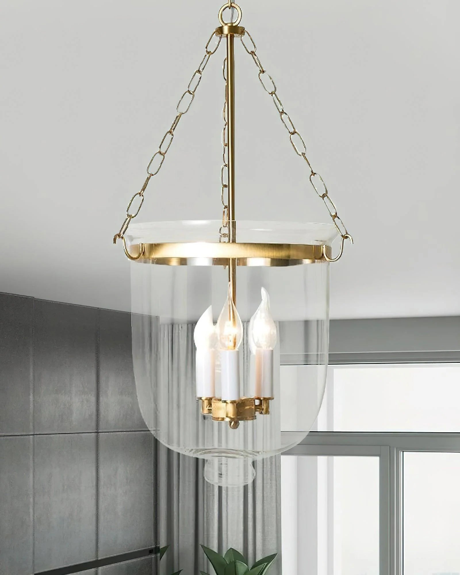 With a glass dome topped by an intricate iron frame, this lamp emits a soft, luminous glow. The elegant chain suspension adds a celestial touch, making it a sophisticated centerpiece for any sophisticated setting.