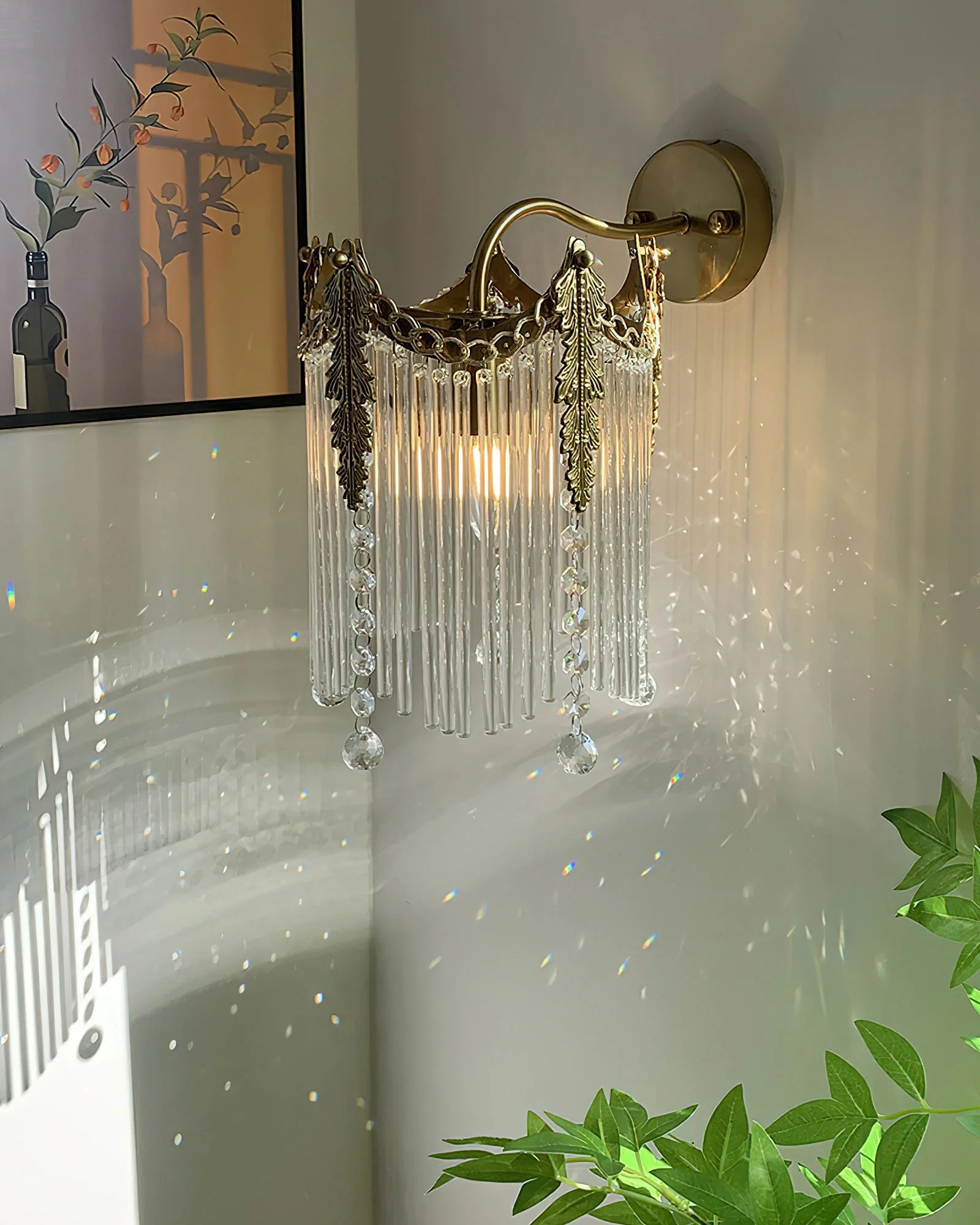 The Vacarro Wall Lamp is a perfect blend of luxury and craftsmanship, designed to make a bold statement in any space. With its timeless combination of brass and glass, this lamp exudes sophistication. The brass frame offers a touch of warmth and durability, while the delicately cascading glass details create a stunning, shimmering effect when illuminated.