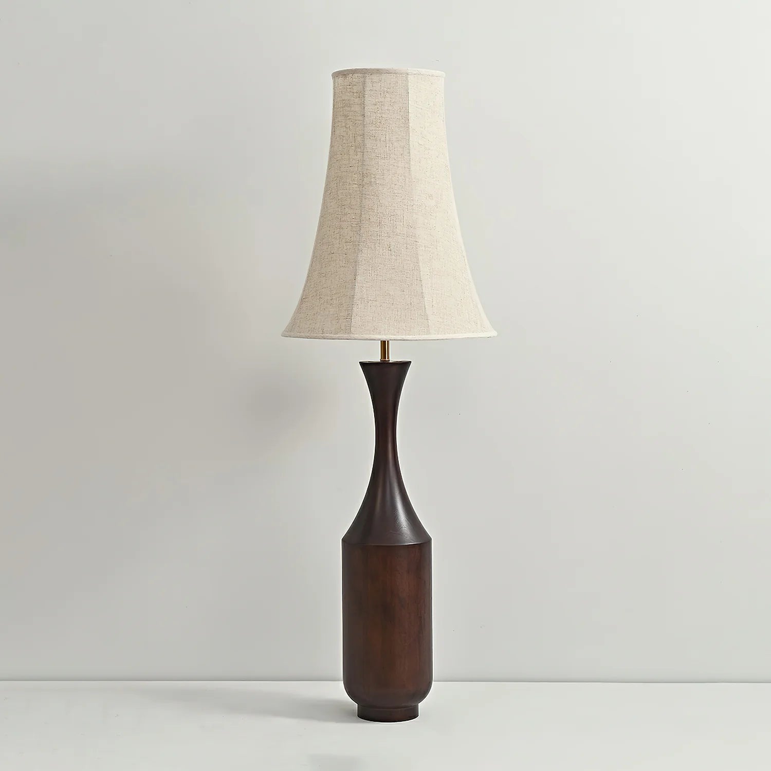 The vase silhouette floor lamp stands out with its slender body design, just like a slender vase, streamlined and elegant. The soft light of the fabric lampshade creates a warm atmosphere in the room, and the walnut base adds a modern and stable temperament. The overall design is simple and exquisite, suitable for any style of home environment.