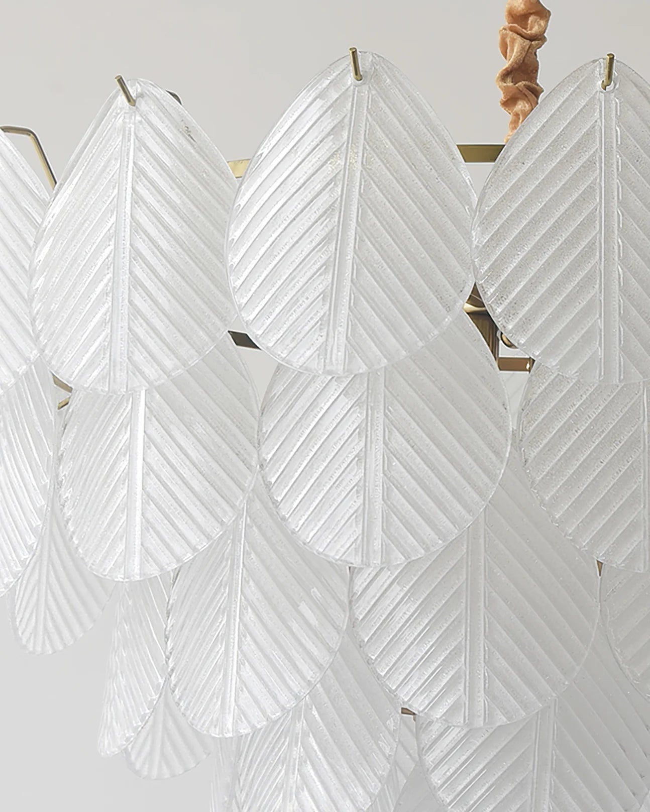 The Verbier Chandelier is a stunning piece crafted with leaf-shaped glass. It's perfect for adding a touch of elegance to any room. Boasting a timeless design, it will instantly elevate the look of your space.